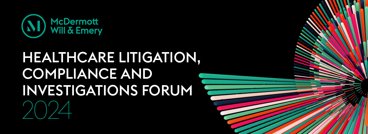 By attending this event, I consent to being filmed, recorded and/or photographed (“recordings”) and to McDermott’s use and modification of all such recordings in which I may appear. I acknowledge that press may be in attendance. Please contact HealthLitForum@mwe.comwith questions.
